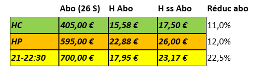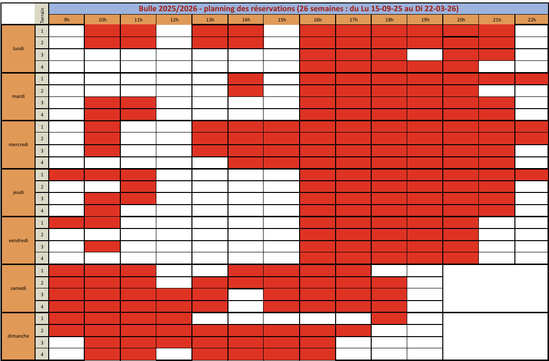 Crรฉneaux libres (en blanc) pour la saison 2025/2026